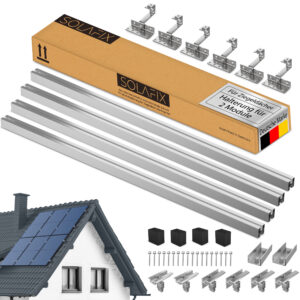 Das Solafix-Montageset ermöglicht die schnelle und sichere Installation von zwei Solarmodulen auf Ziegeldächern. Gefertigt aus hochwertigem Aluminium und Edelstahl, bietet das Set maximale Witterungsbeständigkeit und Langlebigkeit. Durch das durchdachte Design ist es besonders leicht, nahezu ballastfrei und ideal für die Eigenmontage geeignet – ganz ohne Spezialwerkzeug. TÜV-geprüft, flexibel anpassbar und sofort einsatzbereit.